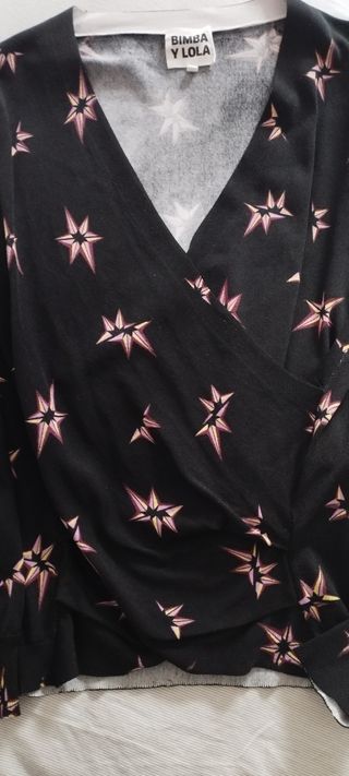 Top de manga larga con un diseño cruzado y fruncido en la cintura. Es un poco corto de talla, es decir queda justo por la cintura. - Es talla S pero yo soy talla M/L y me sirve, o sea, talla grande. - Ha sido usado, pero en MUY BUEN ESTADO. - Tiene elástico también en los puños. - Tejido acanalado. - Escote en pico. Cualquier cosa me preguntas, sin problemas :)
