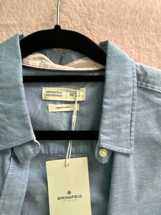 Camisa de manga larga de la marca Springfield. - Color azul. - Talla M (38/10). - Cuello camisero. - Cierre de botones. - Bolsillo en el pecho.