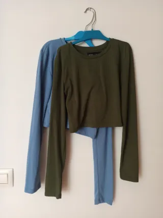 Conjunto de dos camisetas de manga larga. Beige (talla S) Negra (talla L) Precio por ambas: 35€