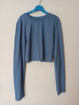 Blusa de manga larga en color azul. - Cuello redondo. - Tejido suave y cómodo. - Diseño versátil.