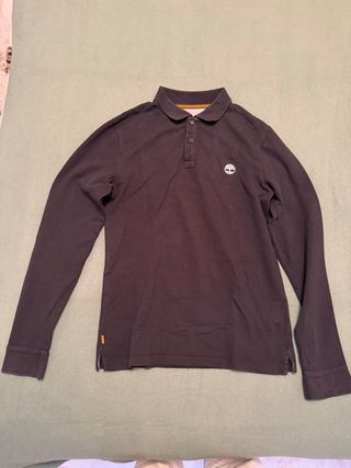 Camiseta original de manga larga de la marca Timberland. - Logo de la marca bordado en el pecho. - Cuello tipo polo con botones. - Detalle de ribete naranja en el cuello.