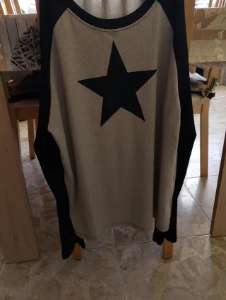 Camiseta de manga larga con un diseño llamativo. - Cuerpo beige con detalle de estrella negra. - Mangas y cuello negros.