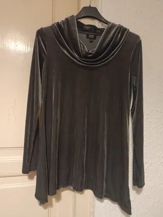 Elegante camiseta de manga larga con cuello drapeado. - Material: Terciopelo suave. - Diseño: Cuello tipo cascada. - Corte: Holgado y favorecedor.