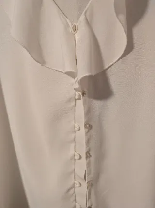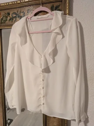 Elegante blusa de Zara con un diseño de volantes. - Cuello con volantes. - Cierre de botones. - Mangas largas. - Nunca se ha usado. - Es muy elegante, sirve tanto con un vaquero como para vestir.
