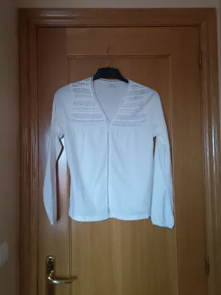 Camiseta de manga larga con un diseño calado.Punto fino. Mide de sisa a sisa 44 cm y 56 cm de largo. TE INVITO A VISITAR MI SEGUNDO PERFIL. UNE TODOS LOS ARTÍCULOS QUE TE GUSTEN Y PAGA UN SOLO ENVÍO