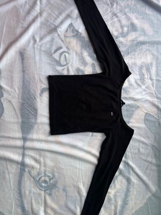 Camiseta de estilo alternativo o emo Talla S (US 4, EUR 36) Marca: Romwe Bastante oversize! Tiene mangas que se desenganchan! Así que la puedes llevar como si fuera de manga larga o de manga corta. Nota: aún enganchadas, queda un hueco entre el hombro y el bajo de la manga (pero se puede regular cuánto). -Medidas- Hombros: 53 cm apróx Largo: 68 cm apróx Largo de manga: 52 cm apróx Medida a mano, hay margen de error Muy buen estado, poco uso. La ilustración está impresa, apenas tiene relieve. Muy suave y cómoda. 100% poliéster