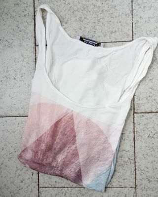 Camiseta de tirantes con caída de la marca Pull & Bear. Prenda de segunda mano en muy buen estado con motivo animal y de la talla S. - Estampado geométrico con efecto degradado.