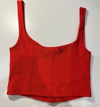 Top de canalé en color rojo, con un diseño moderno y favorecedor. - Tirantes anchos. - Escote cuadrado. - Costuras marcadas en el delantero para un ajuste estructurado.