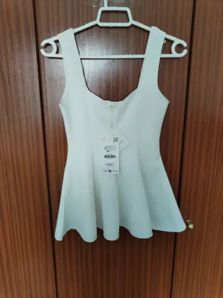 Top de tirantes de Zara, con un diseño elegante y favorecedor. - Escote pronunciado. - Corte acampanado en la parte inferior. - Tejido cómodo y con caída.