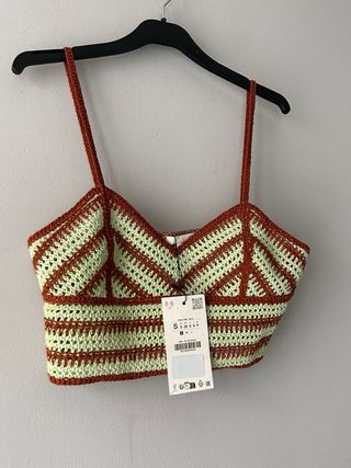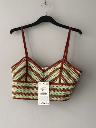 Top Zara Crochet Verde y Marrón Talla S