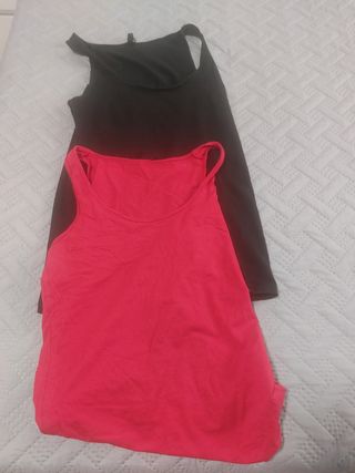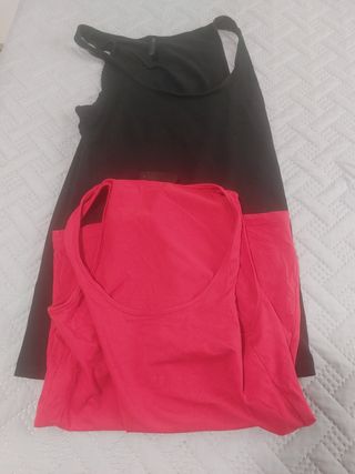 Dos camisetas de tirantes, una negra y otra roja. Son de la marca Stradivarius y talla S. Están en buen estado. - Marca: Stradivarius - Talla: S
