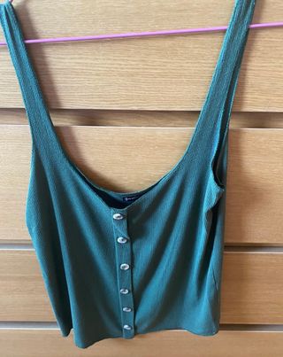 Crop top corto de color verde con tejido suave - Escote cuadrado. - Tirantes finos. - Bajo con ondas. - Talla S/36