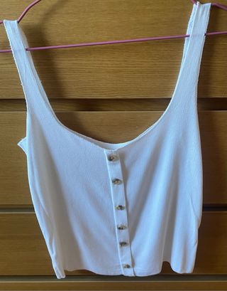 Camisetas tirantes son iguales las 2 Adornos botones Son anchitas Poco uso Talla S Stradivarius Podéis ver más en mi perfil