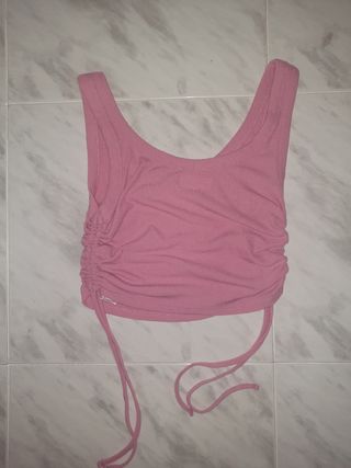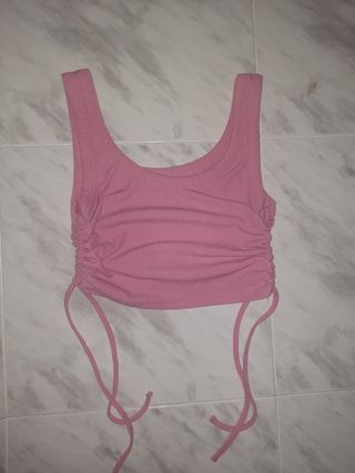 Top Rosa de tirantes de mujer con cuerdas para ajustarlo al gusto. Esta nuevo sin usar. Talla S Marca Lefties