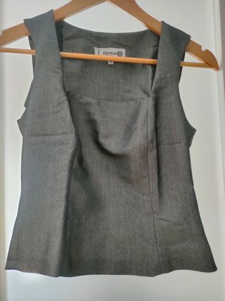 Camiseta color gris de tirantes ancho con cremallera invisible lateral. Talla 36 de Fórmula Joven