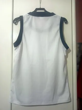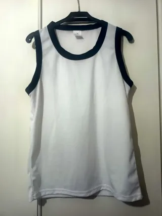 Camiseta deportiva de tirantes en color blanco. Diseño moderno y cómodo. - Cuello y sisas con ribete negro. - Tejido ligero y transpirable.