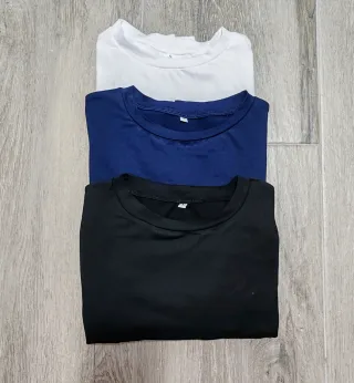 Pack de tres camisetas básicas, ideales para el día a día. - Camiseta blanca - Camiseta azul marino - Camiseta negra Todas talla S, nuevas
