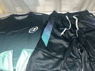 Conjunto deportivo de camiseta y pantalón corto para hombre. - Camiseta con diseño degradado y logo. - Pantalón corto con cordón ajustable y detalles degradados.
