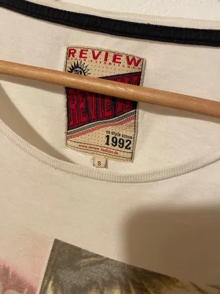 Camiseta estampada Review Talla S blanca Material: 100% algodón