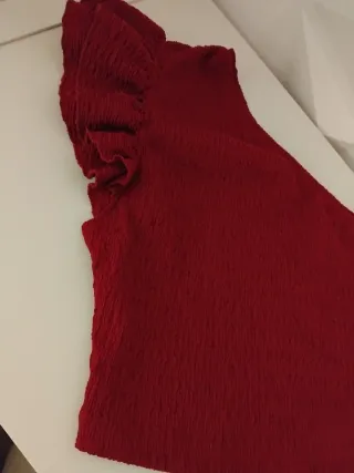 Top de canalé en color rojo, talla S. Un básico versátil para tu armario. - Tejido de canalé. - Diseño con escote en V. - Tirantes finos.