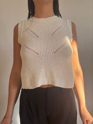Top de punto sin mangas de Stradivarius. - Diseño calado en la parte delantera. - Cuello redondo. - Bajo con acabado festoneado.