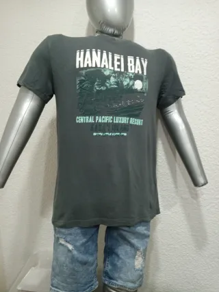 Camiseta de manga corta con estampado. -En perfecto estado -No hago envíos NO ACEPTO BIZUM NI PAGOS POR WALLAPOP SOLO EFECTIVO ENTREGA EN PERSONA GRACIAS -De algodón - Estampado frontal Hanalei Bay Central Pacific Luxury Resort Kauai Island. - Cuello redondo.
