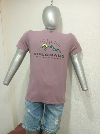 Camiseta con estampado de montañas y sol, inspirada en Colorado- -En perfecto estado -No hago envíos NO ACEPTO BIZUM NI PAGOS POR WALLAPOP SOLO EFECTIVO ENTREGA EN PERSONA GRACIAS - Diseño Mountain Exploration. - Cuello redondo y manga corta.