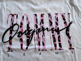 Camiseta de la marca Tommy Jeans con un llamativo estampado. - Diseño con estampado de leopardo en tonos rosa y negro. - Cuello redondo. - Manga corta.