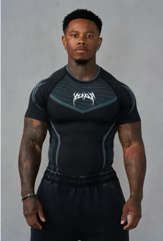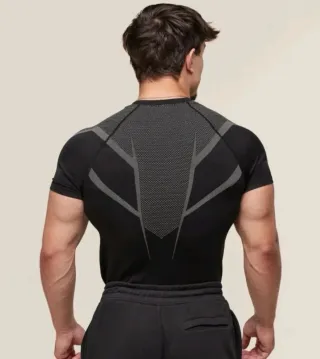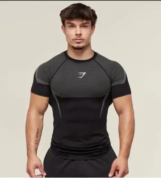 Camiseta deportiva Gymshark modelo Onyx V5. - Diseño ajustado y moderno. - Tejido técnico transpirable. - Detalles texturizados en la parte superior.