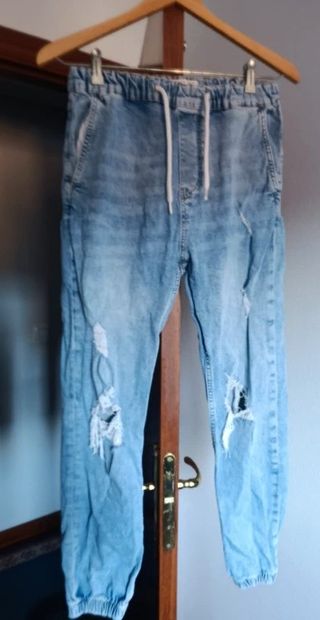 Pantalón Jogger Vaquero Pull&Bear Rotos Talla S