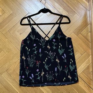 Top negro floral con tirantes finos que se cruzan en la espalda. DA UN POCO MAS DE TALLA - Forro interior - Tejido resistente y vaporoso - Totalmente nuevo para looks elegantes y sofisticados 😍