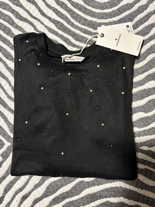 Camiseta de manga larga con un diseño elegante y moderno. - Detalle de perlas incrustadas en toda la prenda. - Cuello redondo. - Tejido suave y cómodo.