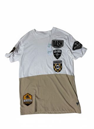 Camiseta de Guess con un diseño inspirado en el mundo del motor. - Parches bordados con el logo de Guess y motivos de carreras. - Combinación de colores blanco y beige. - Cuello redondo y manga corta.