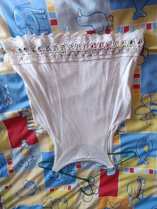 Muy poco uso. En perfecto estado. Es toda de encaje con las mangas al codo. Pone talla S pero da para 38/40.