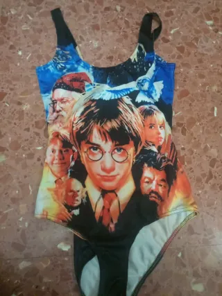 Bañador o body con estampado de Harry Potter. - Diseño multicolor con personajes de la saga. - Talla S.