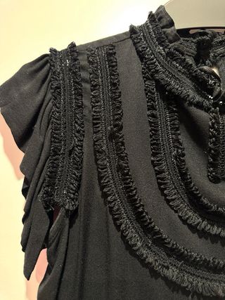 Preciosa camisa manga larga en negro ♡ Mangas bordadas con puño Muy bonito bordado en parte inferior ✨️🌹 Elegante, chic, lovely 71cm largo 40cm hombros 51cm sisa a sisa 58cm mangas ♥️✨️♥️✨️♥️✨️♥️ #blackembroideredshirt #blackwomanshirt #camisanegramujer #camisanegrabordada #chemisenoirebrodée #camicianeraricamata #camisapretabordada #bludanegra Elegante blusa negra de manga larga, talla S. Tiene un diseño precioso con delicados bordados de encaje en los puños y el bajo. Luce impecable, lista para usarse. - Cierre de botones. - Encaje negro. - Acabados delicados.