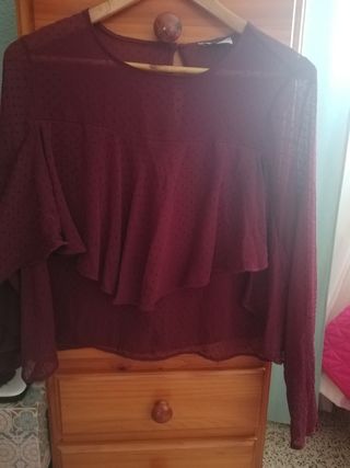 Top granate Zara con cuello, talla S. Es un poco corto.