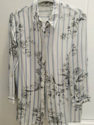 Camisa de Zara con un llamativo estampado. - Diseño con cadenas y motivos florales. - Cuello camisero. - Manga larga. - Cierre de botones.