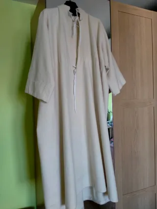 Túnica Zamora en color blanco con bajo ya bajado y mangas.niñ@ hasta 11 años.como nueva!! 44cm+8 manga, 48cm hombros, 123cm largo. - Diseño de talla única. - Tejido de estameña.