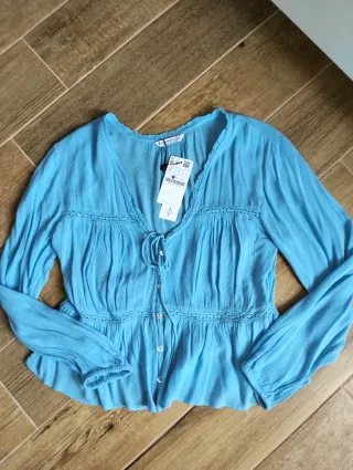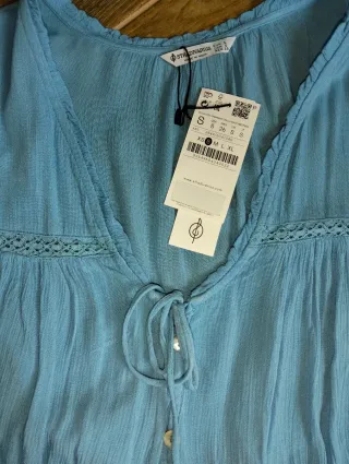 Top de punto con un diseño moderno y elegante. - Cremallera frontal dorada. - Detalle de fruncido en la parte delantera. - Corte ajustado. Top de la marca Bershka...... Pone talla M pero la tela no es muy elástica y queda muy muy justo. El tejido es tupido y consistente tipo punto fuerte. Foto hecha sobre maniquí talla S/M. MEDIDAS MANIQUÍ Contorno pecho 85cm Contorno cintura 61cm Contorno cadera 90cm Yo creo que sería una Talla XS Con cierre delantero. Cremayera dorada con una cadenita que abre completamente. Buen estado.