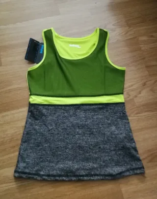 Camiseta deportiva para chica con un diseño moderno y cómodo. - Tejido transpirable en la parte superior. - Detalle de banda en contraste. - Corte sin mangas.