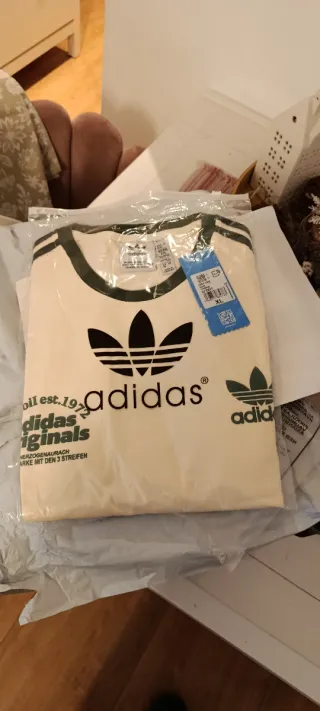 Camiseta de manga corta de la marca Adidas en color morado. - Logo de Adidas en el pecho. - Cuello redondo. La compré de talla de niño pensando que sería como una S y resulta que es talla XL de adulto Está 100% nueva Es de tela gruesa se nota al tacto y a la vista que es de calidad Es morada preciosa Mide 70cm x 58cm equivale a XL slim fit