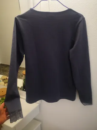 Camiseta térmica de manga larga con detalles de encaje en cuello y puños. - Cuello en pico. - Puños con encaje. - Detalle de encaje en el escote. Totalmente nueva sin estrenar