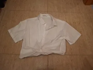 Blusa de manga corta en color blanco. - Cuello camisero. - Cierre de botones. - Detalle de volantes en el cuello.