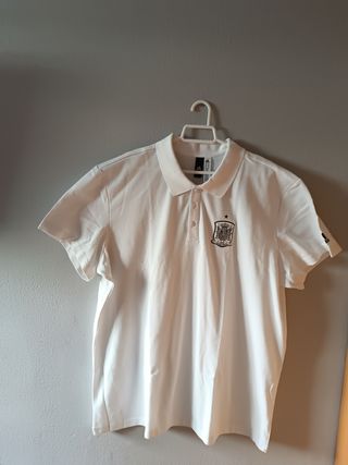 Polo oficial de la Selección Española de Futbol Polo blanco con el escudo del equipo y logo de la marca Adidas en la manga izquierda Prenda OFICIAL y completamente ORIGINAL del equipo. Etiquetas intactas (comprobante de originalidad) Talla 2XL Escucho ofertas