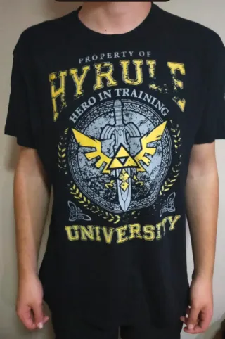 CAMISETA NEGRA - HYRULE UNIVERSITY - TALLA XL y +