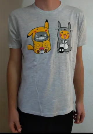 CAMISETA GRIS - PIKACHU Y TOTORO - TALLA XL y +