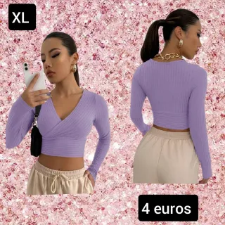 Blusa morada con detalles de lentejuelas brillantes. Es una prenda nueva, ideal para lucir un estilo llamativo. - Mangas largas. - Detalle de lentejuelas en el escote y puños. - Ajuste fruncido en la parte inferior con cordones. .Preciosa blusa morada talla XL, nueva. Es una prenda elegante y vistosa. - Tiene detalles de lentejuelas moradas en el cuello y las mangas. - El diseño es fluido y favorecedor. - Perfecta para una ocasión especial. Rebajas Precio : 6.95€ Se recoge en mano : -Madrid (a concretar día lugar y hora.)Por compras minimas. -Toledo unicamente en el Pueblo La Guardia. Hago envíos a través de Wallapop.