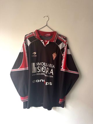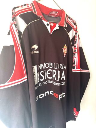 Camiseta de fútbol de la temporada 1999/2000. - Diseño con cuello en V y manga larga. - Detalles en rojo y blanco en mangas y cuello. - Logo de Astore en el pecho. - Escudo del Sporting en el pecho.