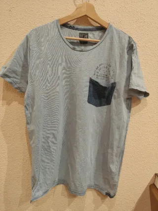 Camiseta de manga corta para hombre de la marca Pepe Jeans. Presenta un diseño con bolsillo en el pecho y un estampado circular en la zona superior. - Color azul y gris. - Estampado gráfico. - Bolsillo en el pecho. Talla XL , buen estado de hombro a hombro 47 cm , largo 70 cm #pepejeans